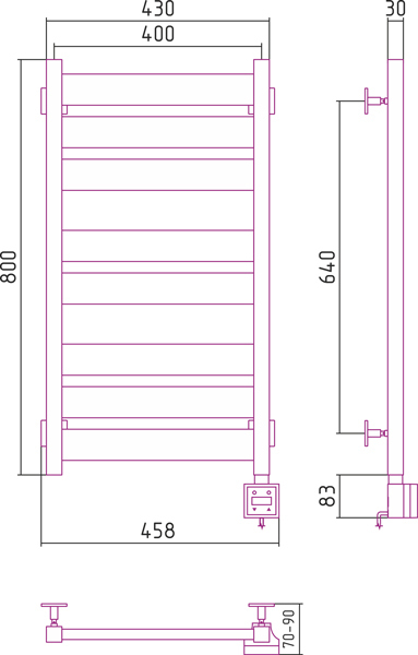 Полотенцесушитель электрический Сунержа Аркус 3.0 800x600